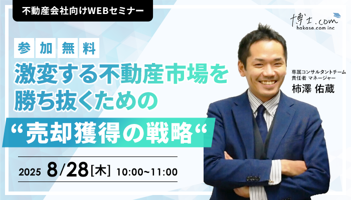 • 【不動産会社様向けWEBセミナー】 ~激変する不動産市場を勝ち抜く~“売却獲得の戦略”