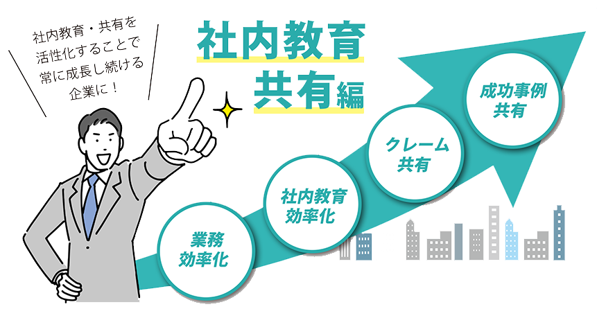 業務の流れや営業ロープレ、不動産知識などの基本的 な内容を事前に動画で撮影し、新入社員に視聴させた 後、ロープレや実践を行うことで理解度が深まり、 成長が加速します。