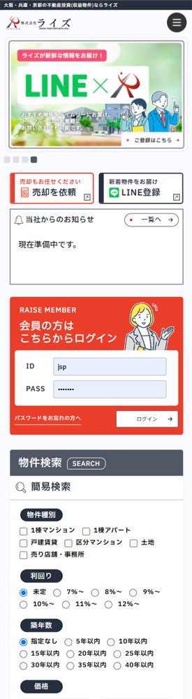 大阪・兵庫・京都を商圏の中心とする不動産会社ライズ様の収益不動産ホームページです。