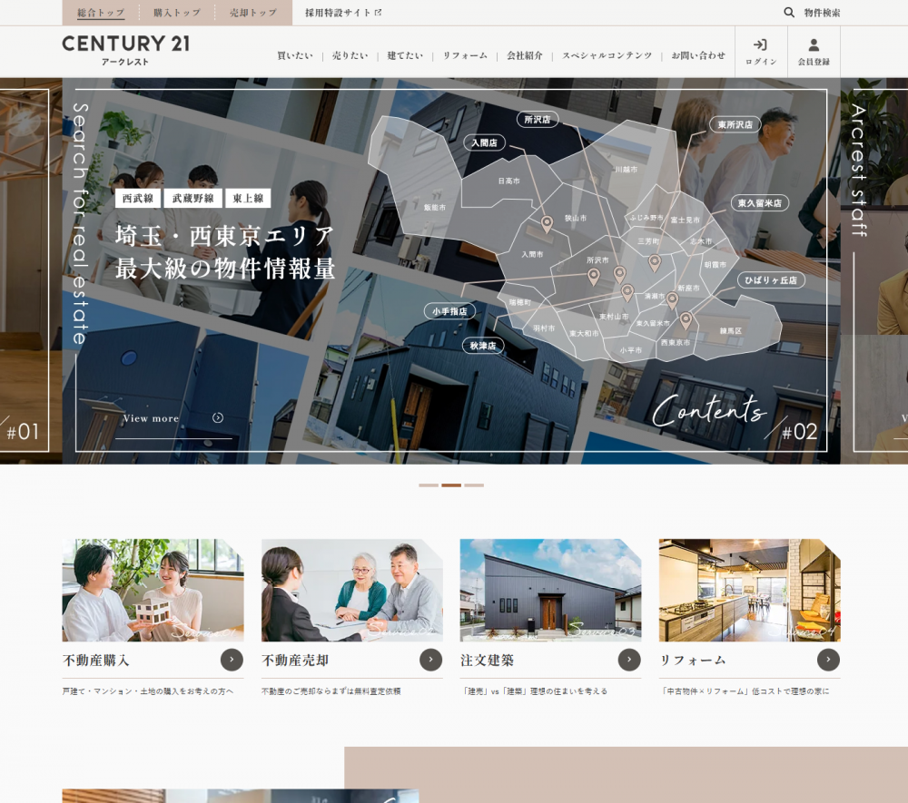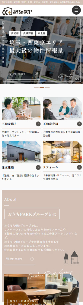 所沢市・西東京市・東村山市・東久留米市・入間市等、西武線を主要商圏としたおうちの仲介+(株式会社アークレスト)様の売買ホームページです。