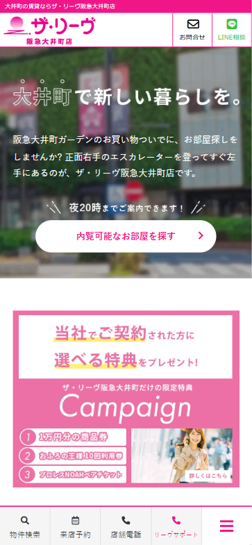 アパート・マンション管理業で有名なリーヴライフトゥエンティーワンの阪急大井町店様の賃貸ホームページです。
