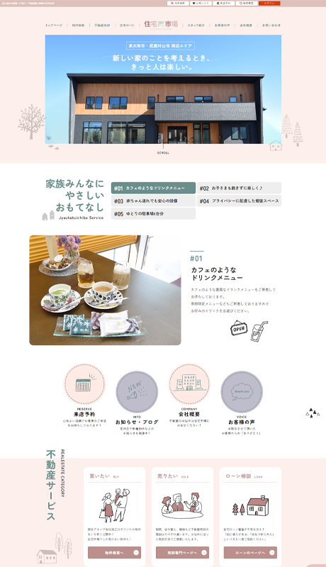 住宅市場様は、東大和エリアで売買仲介を請け負う不動産会社様です。以前のホームページを制作してから5年ほど経過したタイミングでデザイン面や機能面が古く、他社に劣っていると感じてホームページを刷新する決意をしました。
