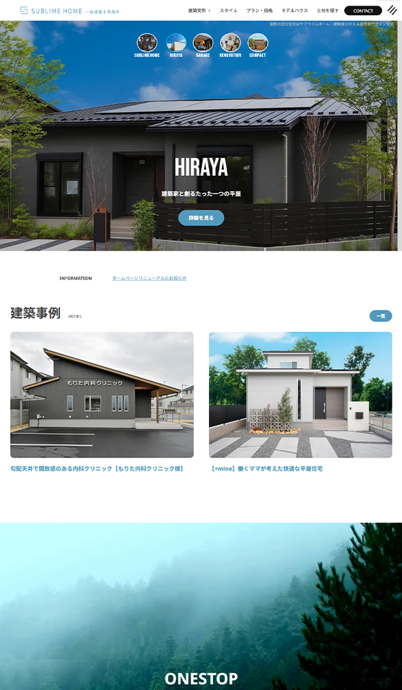 デザインに関しては多彩な建築スタイルに対応している様をしっかりと表現して各種プロモーションからの流入に対しても期待感を高められるよう、どのように実績やモデルハウスを魅せるかをクライアント様と2人三脚で制作させていただきました。