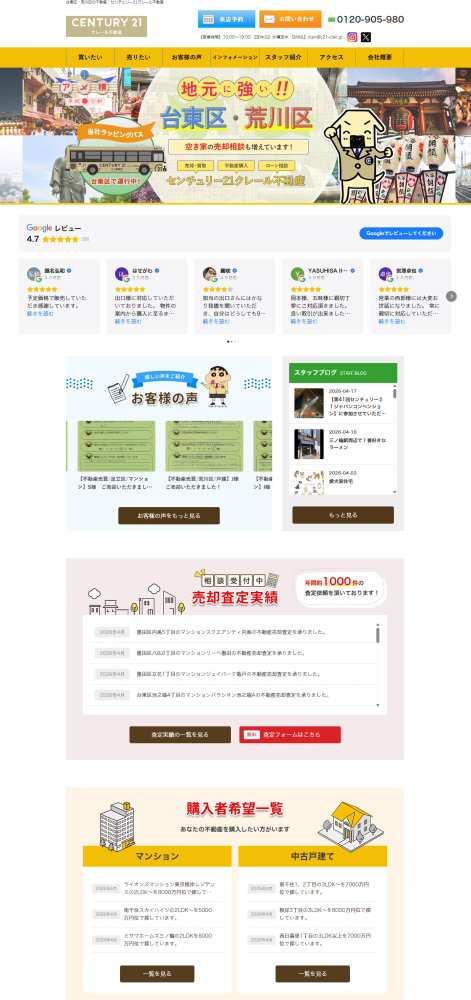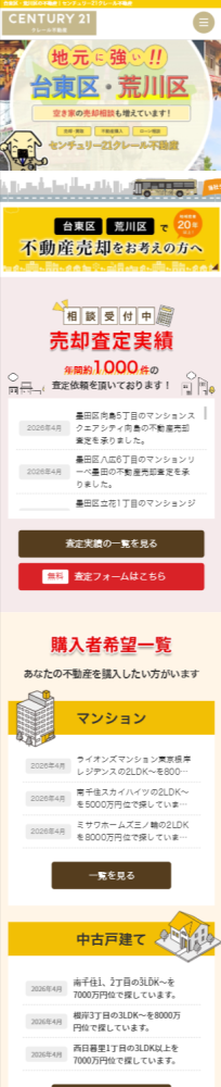 台東区、荒川区を主要商圏に営業しているセンチュリー21加盟店、センチュリー21クレール不動産様の不動産売買ホームページです。